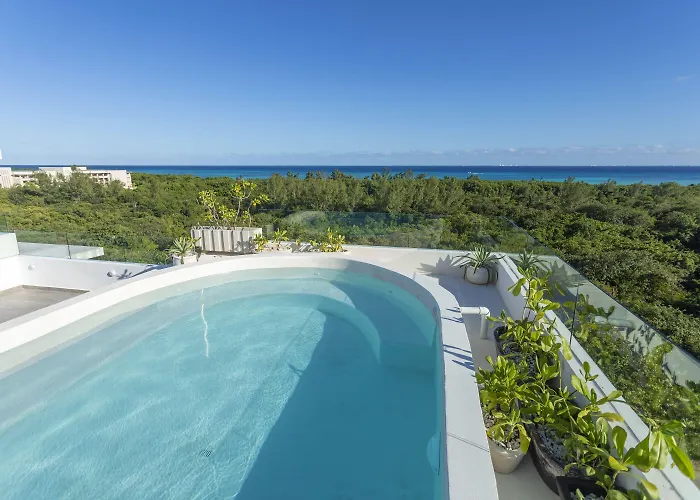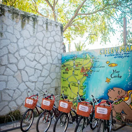 Hotellet Suites Cielo Y Mar Playa del Carmen ligger i distriktet 5th Avenue, inom 10 minuters promenad från Iglesia de Guadalupe och 2 km från Quinta Avenida. Det erbjuder shoppingområde och förvaringsrum. Detta 3-stjärniga hotell har en takpool, WiFi i allmänna utrymmen och rum med utsikt över trädgården.